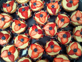 - Decorate with diced strawberries and blueberries. Refrigerate until ready to serve.